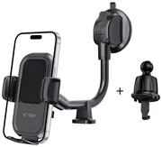 Pidike erottuu jousikuormitteisen mekanisminsa ansiosta mukavasta yhden käden käytöstä, ja pitkä, ulosvedettävä varsi sekä 360° kääntyvä pää takaavat puhelimen optimaalisen sijoittelun. Asennus ja irrotus ovat intuitiivisia - puhdista pinta, paina imukuppia ja kiristä vipu. Käytä mukana toimitettua koukkusovitinta ilmanvaihtoaukkoihin kiinnittämistä varten. Imukupin pidon säilyttämiseksi on suositeltavaa pestä se ennen uudelleenasennusta.