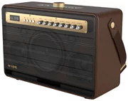 The speaker stands out with its elegant, classic design, which will surely appeal to retro style enthusiasts. It is also characterized by a durable construction, resistance to damage, and IPX6 waterproof rating. You can use it indoors and outdoors without worrying about accidental splashes or rain. Furthermore, the speaker comes with a special shoulder strap for easy portability.