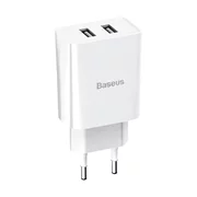 Laturi Baseus Speed Mini Dual U Travel Charger 10.5W White Charging Set With Mini White Cable USB For iP 2.4A 1m White