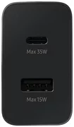 Fast-charging mains charger, 35 W total power, outputs × USB-C (max. 35 W) and USB-A (max. 15 W)