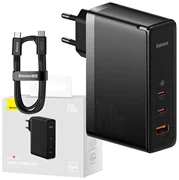 Lataa 3 laitetta samanaikaisesti nopeasti ja turvallisesti. Baseus -laturissa on 2 USB-C-porttia ja yksi USB-portti, se toimii myös PD/QC/PPS-pikalatausprotokollien kanssa. Nykyaikaisten ratkaisujen käytön ansiosta voit uudistaa laitteesi energiaa ilman vaurioitumisriskiä, ja kevyen ja kompaktin rakenteensa ansiosta voit säilyttää sitä helposti. Lisäksi mukana toimitetaan USB-C-USB-C-kaapeli.