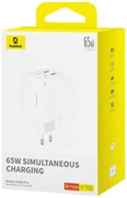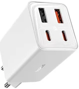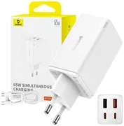 Baseus GaN6 Pro is a wall charger with four charging ports - two USB-C and two USB-A, utilizing the latest technology based on gallium nitride. The charger allows for fast charging with a maximum power of 65W, enabling users to charge their devices at lightning speed. It is equipped with numerous protections against overvoltage, short circuit, high temperature, etc. Thanks to the two types of ports, it is possible to charge various devices such as smartwatches, gaming consoles, laptops, tablets, headphones, etc. BCT and Glue Fill Cooling technology ensures lower temperatures during fast charging, providing users with comfort and safety.