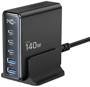 Kaikki tämä 5 portin ansiosta, joista 3 USB-C-porttia ja 2 USB-A-porttia. Kokonaisteho on jopa 140W! Se on kuin 5 suuritehoista laturia yhdessä laitteessa!