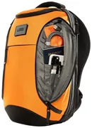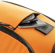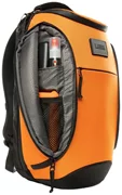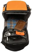 Spacious interior with multiple organizational dividers, several compartments and pockets, and a fleece-lined upper tech locker.