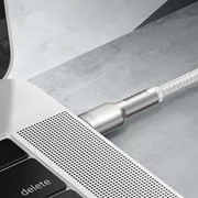 Integroidun rakenteensa, sinkkiseosmateriaalinsa ja UV-pinnoitteensa ansiosta kaapeli kestää hapettumista ja värin häviämistä. Kaapelin pistokkeet ovat kestäviä ja kestävät kulutusta ja hapettumista, joten ne kytkeytyvät varmasti portteihin myös pitkäaikaisen käytön jälkeen. Nailonpunos antaa lisäsuojaa, joustavuutta ja lujuutta, ja se on helppo säilyttää. Lisäksi kaapelin ja pistokkeen välinen liitos on vahvistettu joustavalla TPE:llä. Tarranauha estää sotkeutumisen ja auttaa pitämään kaapelin järjestyksessä.Lisäksi kaapelia on saatavana neljässä eri värissä: valkoinen, violetti, vihreä ja musta.