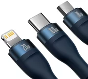 Älä tuhlaa aikaa laitteiden lataamiseen! Baseus-kaapelissa on 3 lähtöporttia: Voit ladata jopa 3 laitetta samanaikaisesti. Lisäksi kaksois-USB- ja USB-C-tuloportin ansiosta voit liittää kaapelin eri laitteisiin.