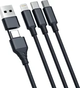 Hyper Cable 3in1 ™ on yksi ratkaisu useisiin laitteisiin ja tarpeisiin. Kaapelissa on jopa kolme päätä: USB-C, Micro USB ja Lightning. Se on yhteensopiva monenlaisten laitemerkkien kanssa. Se kannattaa pitää kotona, toimistossa ja autossa.