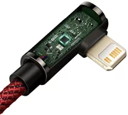 The cable provides fast charging for Apple devices. You will also use CACS000209 for data transmission. It is made of high quality materials, so it is resistant to damage. The 90° design allows you to use your phone comfortably while charging, and the blue indicator signals the process of energy renewal. A special chip protects your device's battery from overcharging and guarantees its safety.