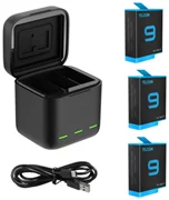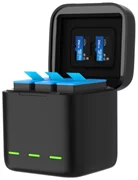 Conveniently store and charge up to 3 batteries for GoPro Hero 9 / Hero 10 at once? Now it's possible! The Telesin GP-BNC-902 portable 3-channel charger surprises you with its performance and safe use. It allows you to charge all 3 batteries in just 2.5 hours! Thanks to its improved design, it is simple and convenient to use and easy to transport. You will be informed about the charging status by 3 colored light indicators. You will also find 3 rechargeable batteries for GoPro Hero by Telesin in the kit.