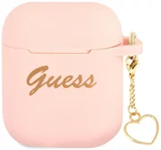 GUESS Silikoni Charm Cover. Silikonikotelo suojaa langattomien Apple AirPods -kuulokkeiden telakointiasemaa pintavaurioilta ja mahdolliselta katoamiselta. Laadukas silikonikotelo sopii täydellisesti alkuperäiseen AirPods-koteloon ja on erittäin miellyttävän tuntuinen. Kotelon erottaa kultainen Guess-logo vintage-tyyliin, lisäksi sivulla on kultainen tagi, jokaóra antaa kotelolle tyylikkään tyylin.
