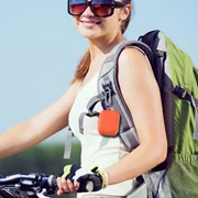 Lisäksi kotelossa on käytännöllinen karabiini, joka lisää käyttömahdollisuuksia - kuulokkeet voidaan kiinnittää avaimilla varustettuun kaulanauhaan tai housujen vyöhön, jolloin kuulokkeiden pudottaminen tai hukkaaminen on mahdotonta.