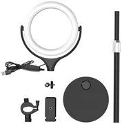 A few simple steps are enough to assemble the tripod yourself. Fix the bar to the correct height and then tighten it with a screw. Then attach the rod to the round base. When you point the main part of the light to the stem of the tripod, tighten the screw firmly. Loosen the knob and put it through the rod, then try to screw it in so that it stays stable. The last step is to fix the phone mount to the clip.