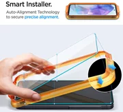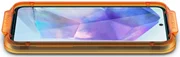 Spigenin "AlignMaster"-sarjan karkaistu lasi on kiinnitetty puhelimen etuosaan täydellisesti leikatulla kiinnityskehyksellä, jonka ansiosta voit sijoittaa sen täydellisesti näytölle. Valmistaja on yksinkertaistanut kiinnitysmenetelmää niin paljon, että se on täysin intuitiivinen jokaiselle käyttäjälle.