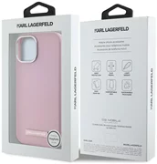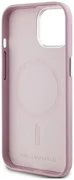 This elegant case is made from high-quality eco-leather, giving it a subtle, matte appearance. Additionally, it features metallic inserts around the camera frame and on the side buttons, highlighting attention to detail. The lower part of the case has an emblem with Karl Lagerfeld's logo, adding a luxurious touch to the design.