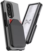 The premium cover is durable and lightweight while still offering R7x shockproof protection to withstand drops from up to 8FT. An extra raised 2.2mm bumper edge protects the phone’s impressive screen and 12MP cameras. To help prevent clumsy drops, there are also anti-slip grip sides The standout feature of the Samsung Galaxy Fold 3 case though is the wallet design. The cardholder slot has room for 3 credit cards that are securely held in place. Built into the wallet back cover, you’ll also find a strong metal plate to support magnetic car mounts. Need to take off the wallet in a hurry? The swivel lock design makes it easy. Once removed, the case fully supports wireless charging and Powershare. The Galaxy Z Fold 3 wallet case is available now in 3 sleek colors - black, gray, and pink.