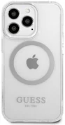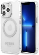 The case will perfectly highlight the unique design of your iPhone, it is decorated with silver elements such as the frame around the lenses, buttons and the Guess logo. The case is equipped with a magnetic ring compatible with the MagSafe wireless charger, ensuring quick and easy charging. The magnetic ring perfectly matches the colours of the cover.