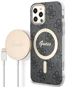 Guess Case + Charger Set iPhone 12/12 Pro black hard case 4G Print MagSafe (GUBPP12MH4EACSK)