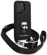 Karl Lagerfeld iPhone 13 Pro hardcase black Saffiano Metal Ikonik (KLHCP13LSAIPCK)