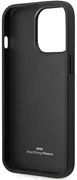 The outer material is decorated with a stripe of raised tiny dots in blue and stitching, giving the case a unique touch. There is also a BMW brand emblem on the back to add an elegant touch.