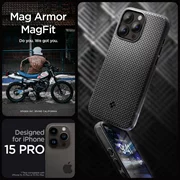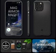 Spigenin Mag Armor Magsafe on TPU-materiaalista valmistettu kotelo, joka takaa sen kestävyyden ja vahingoittumattomuuden. Käytetyn Air Cushion -teknologian ansiosta se suojaa vahingoittumiselta pehmentämällä laitetta putoamisen aikana. Kotelon mattapintainen viimeistely estää sormenjäljet ja takaa turvallisen otteen ilman, että laite liukuu kädestä.