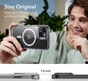 The Classic Hybrid HaloLock from ESR is a one-piece case, consisting of a transparent layer made of acrylic that wraps around the edges and back of the phone, and a sturdy frame around it made of a thermoplastic soft material that further protects the device from drops.