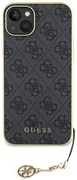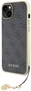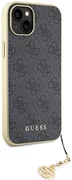 Tyylikkäässä Guessin 4G Charms -malliston kotelossa on tyylikäs, tunnistettava 4G-kuvio, joka on varustettu kultaisella GUESS-logolla.