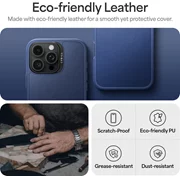 Vegan leather, with bubble bumper. We upped the protection and created a brand new faux leather case that is so good we had to put our name on it.