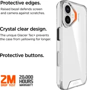 Drop ProtectionThe Eiger Glacier Case has been designed and tested to withstand drops from 2m (6.6feet), and the raised bezel edges help protect your display.Crystal Clear ProtectionThe unique Glacier Tec+ prevents the case from yellowing for longer and protects your device from scratches. Together with independent bu