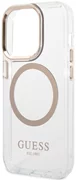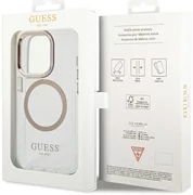 Kotelo korostaa täydellisesti iPhonen ainutlaatuista muotoilua, se on koristeltu kultaisilla elementeillä, kuten kehyksellä linssien ympärillä, painikkeilla ja Guess-logolla. Kotelossa on MagSafe-langattoman laturin kanssa yhteensopiva magneettirengas, joka takaa nopean ja helpon latauksen. Magneettirengas sopii täydellisesti yhteen suojakotelon värien kanssa.