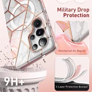 Supcase Cosmo Magsafe -kotelo on ohuempi panssarisuojan muoto. Kotelo on valmistettu kahdesta toisiaan täydentävästä materiaalista - iskuja vaimentavasta TPU:sta ja vahvistavasta polykarbonaatista. Tämän rakenteen ansiosta se pystyy pienemmästä koostaan huolimatta tavanomaisiin panssaroituihin koteloihin verrattuna vaimentamaan tehokkaasti äärimmäisiä pudotuksia.