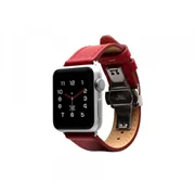 Monowear leather strap for women in red color with matte aluminum adapters in black color and silver butterfly clasp. The durable Saffiano leather finish and perfect processing will raise your Apple Watch to haute couture style.