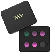 Sunnylife's filter set is a comprehensive tool for your creativity, including MCUV, CPL, ND4 and ND8 filters. This set expands your creative possibilities, making it easier to achieve fantastic results with top quality materials and excellent workmanship. These filters perform multiple tasks: they reduce flash and the amount of UV radiation, and add depth and life to your photos and videos. Using an MCUV filter helps protect your lens from harmful UV rays, which can improve the overall quality of your photos and videos. The CPL filter eliminates non-metallic reflections, enhancing colors and contrasts in your footage. ND4 and ND8 filters allow you to control the amount of light, allowing you to experiment creatively with exposure times and motion effects.