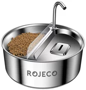 Nyt tarvitset vain yhden laitteen, jotta lemmikkisi saa raikasta, puhdasta vettä ja herkullista ruokaa. Rojecon 2-in-1-kissan juoma- ja kulhoastia on valmistettu korkealaatuisesta 304 ruostumattomasta teräksestä, joten se on täysin turvallinen terveydelle ja kestävä. Siinä on kaksi erillistä osastoa (juomalle ja ruoalle), ja se erottuu 3,2 litran tilavuudellaan ja hiljaisella toiminnallaan. Siinä on myös sisäänrakennettu hana, joka pitää veden juoksevana.