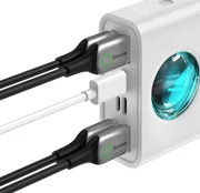 Käytä Baseus Amblight 30000mAh -virtapankkia laitteiden, kuten älypuhelimen tai kannettavan tietokoneen, nopeaan lataamiseen. Tuote käyttää 65W tehoa ja toimii PD-, QC-, SCP-pikalatausprotokollien jne. kanssa. Viiden eri portin ansiosta voit liittää siihen useita laitteita samanaikaisesti, ja LED-näyttö antaa sinulle tärkeimmät tiedot powerbankin toiminnasta.