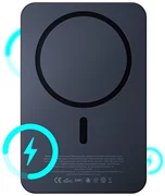 MagSynergy allows you to charge two devices at the same time - one wirelessly via the MagSafe and the other wired via the USB-C port. This versatility makes the powerbank ideal for those who need to charge multiple devices at the same time. Thanks to its Power Delivery technology, MagSynergy provides a fast charging function, significantly reducing the time it takes to fully charge the battery.
