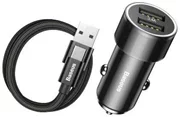 Car Charger + Baseus Small Screw USB-C Cable 2xUSB 3.4A (Black) (6953156271418)