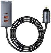 The Baseus Share Together car charger allows you to quickly charge up to 4 devices simultaneously. Its total output power reaches 120W. Extender with a length of 1.5m makes it convenient to use it also for passengers in the back seats. Robust and durable - will ensure the safety of connected equipment. The product is compatible with vehicles from 12V to 24V.