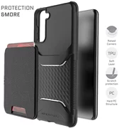 In addition, the dual-layer Galaxy S21+phone case hides a built-in magnet. This makes it easy to use the cover with any of your favorite magnetic mounts. While the wallet makes it handy, the true standout feature of the Galaxy S21 Plus case is its military-grade level protection. The case is made up of two layers - a TPU soft layer and a hard PC structure. Combined, they provide an unmatched level of drop and shockproof protection. With the Galaxy S21+ dynamic AMOLED 2X adaptive display and next-generation 8K cameras, adding extra protection was even more important. That is why the wallet case was enhanced with a strong shock-absorbing bumper and raised corners. Together, they provide an extra layer of protection for the Galaxy S21's Gorilla Glass Victus screen and the phone’s ultra-wide and telephoto cameras.