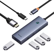 Enhance the capabilities of your computer with the Baseus UltraJoy hub. The docking station offers up to 6 different ports - 4x USB3.0, HDMI and USB-C. It supports high-speed PD charging, supports 4K@60Hz resolution, and can transfer files at up to 5 Gbps. It works great with a variety of devices, and its compact design means you can always have it at your fingertips.