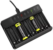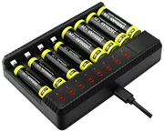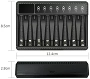 Input: 5V == 2A (USB powered) Output: 1.48V == 0.6A × 8 LED Display: Each of the 8 slots has an individual charging indicator Protections: Overheat, overvoltage, and short circuit protection Certifications: CE, FCC, RoHS |